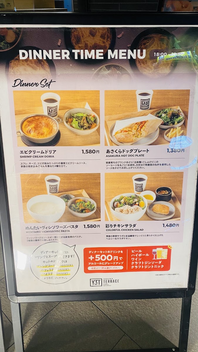 The dessert choices are equally enticing, showcasing a seasonal dessert plate that adapts to the fruits of the day, available as a delightful trio for JP¥1,200. Complement your meal with a selection of carefully brewed drinks, including customizable lattes and traditional Yame tea. The bright, spacious interior creates an inviting atmosphere, perfect for relaxation or productivity, making YAMAYA 3 TERRACE a must-visit for both food lovers and professionals alike.